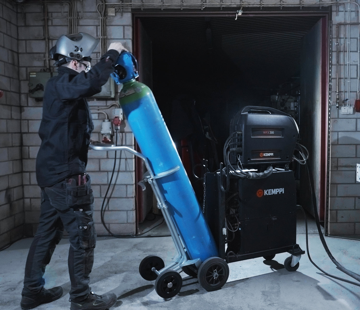 Kaasupullokärrymme on helppokäyttöinen ja turvallinen hitsaustarvike kaasupullojen nostamiseen ja siirtämiseen. Kaasupullo kiinnitetään kiristyslukolla ja kumikahvoilla, mikä minimoi kaatumisriskin sekä tekee lastauksesta ja purkamisesta sujuvaa ja ergonomista. Kärry tehostaa työnkulkua, sillä kaasupulloja voidaan siirtää nopeasti työpisteiden ja hitsauskärryjen välillä.